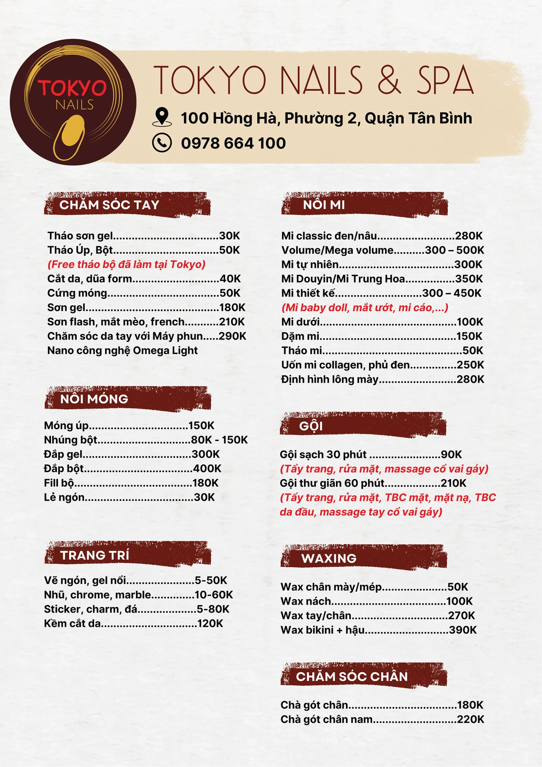 Chào mừng bạn đến với Tokyo Nails & Spa, nơi chúng tôi biến từng khoảnh khắc làm đẹp của bạn trở thành một trải nghiệm đáng nhớ. Với đội ngũ nhân viên chuyên nghiệp, tận tâm và được đào tạo bài bản, chúng tôi tự hào mang đến những dịch vụ chăm sóc đỉnh cao, đáp ứng mọi nhu cầu và phong cách của bạn.